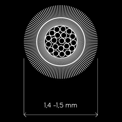 Il filo floccato e’ ottenuto con floccaggio elettrostatico, quindi completamente differente per struttura fisica e caratteristiche meccaniche dalla ciniglia tradizionale.